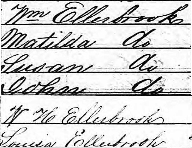 On August 3, 1850, Louisa was five months old. She lived in Christ Church Parish (now Mount Pleasant), Charleston, South Carolina, with her parents, William (spelled Wm), 37, and Matilda Lindsay Elbrook (spelled Ellerbrook), 27. Her siblings were Susan, 10, John, 5, and W. H. (William H.), 3. William, originally from Prussia, worked as a carter, transporting goods by wagon, while the rest of the family members were born in South Carolina. Name listed: Louisa Ellerbrook1