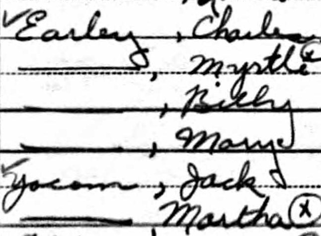 7. 1930 U.S. census, Washington County, Tennessee, population schedule, Johnson City, enumeration district (ED) 90-13, p. 2B, dwelling 33, family 47, Myrtle Earley, image, Ancestry (http://www.ancestry.com : accessed 2 April 2021), citing NARA microfilm publication T626, microfilm 2342017. ↩︎
