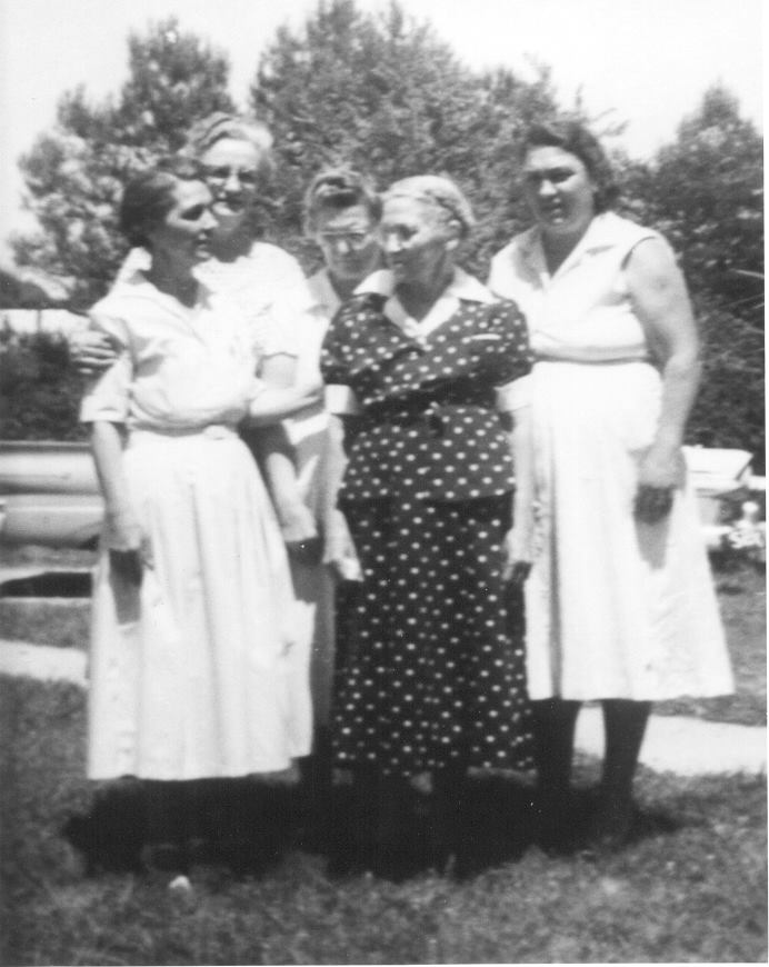 Left to right, Myrtle, sister Marguerite McDonald Clark, sister Lizzy McDonald Smith, mother Ava Crenshaw McDonald, and sister (Annie) Kate McDonald Harrelson.