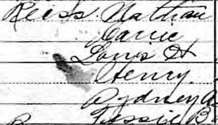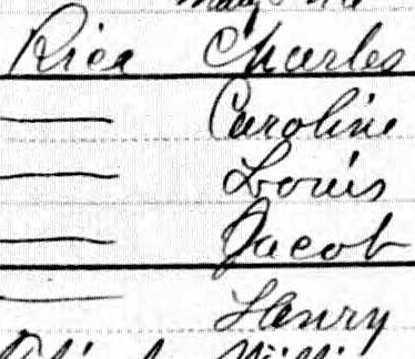 In 1880, Nathan, 34 (listed as Charles), lived with his wife, Caroline Reiss (listed Rice), 32, and their sons: Louis, 8, Jacob, 7, and Henry, 3. Nathan was a butcher, while Caroline stayed home. They resided at 214 Springfield Avenue, Newark, New Jersey. Nathan’s birthplace was recorded as New Jersey and Caroline’s was Bavaria. with their parents being born in the same places. All three children were born in New Jersey, with New Jersey listed as their father’s birthplace and Bavaria as their mother’s. However, much of this information was incorrect, including the spelling of their last name, Nathan’s first name, and the birthplaces of Nathan, Caroline, and their parents. The children’s first names and approximate ages were accurate, and some Reiss relatives did change their last names to Rice. The information was likely provided by someone unfamiliar with the family’s history.11