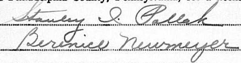 - “Pennsylvania, County Marriages, 1885-1950,” FamilySearch (https://www.familysearch.org/ark:/61903/1:1:Q2ZW-RY7J : accessed 15 June 2021), Entry for Stanley I Pollak and Berenice Newmeyer, June 1938. ↩︎