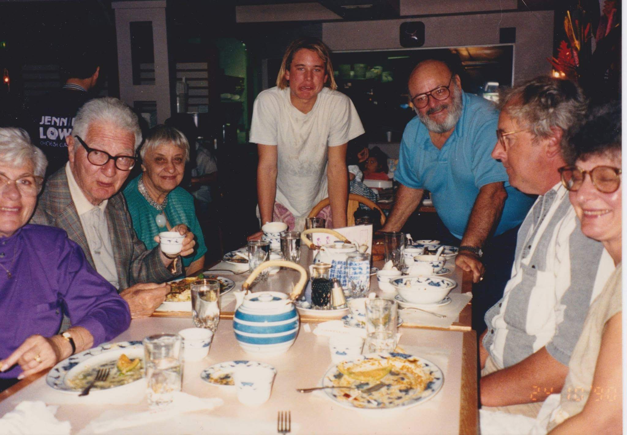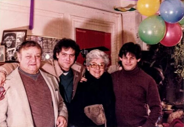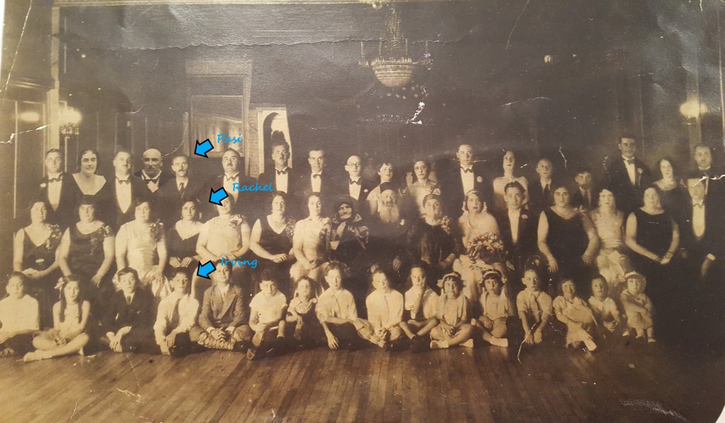 This is a photograph of the extended Mendelson family, sometime before 1934. He is sitting in front of his parents, and his sisters are the two girls standing in the middle of the back row.