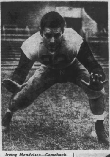 - “Return of Irving Mendelson, watch-charm guard who was hurt in the Michigan game, has strengthened the Penn starting line-up. Mendelson played part of last week’s Navy game but was unable to start.”36