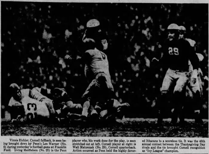 - The Philadelphia Inquirer – November 25, 1938 “Quakers Stubborn Defense Thwarts Favored Ithacans”14