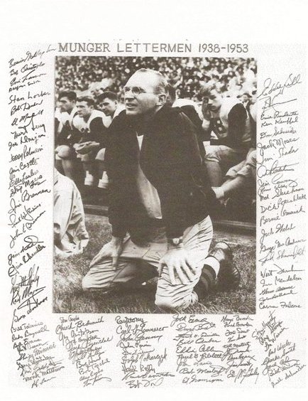 - George Munger, starting his first season as head coach of the Red and Blue gridiron squad, invited 43 hopeful players to try out for the team. There were three guards of promise: Robert Hunt, Jim Chandler, and Irving Mendelson.5
