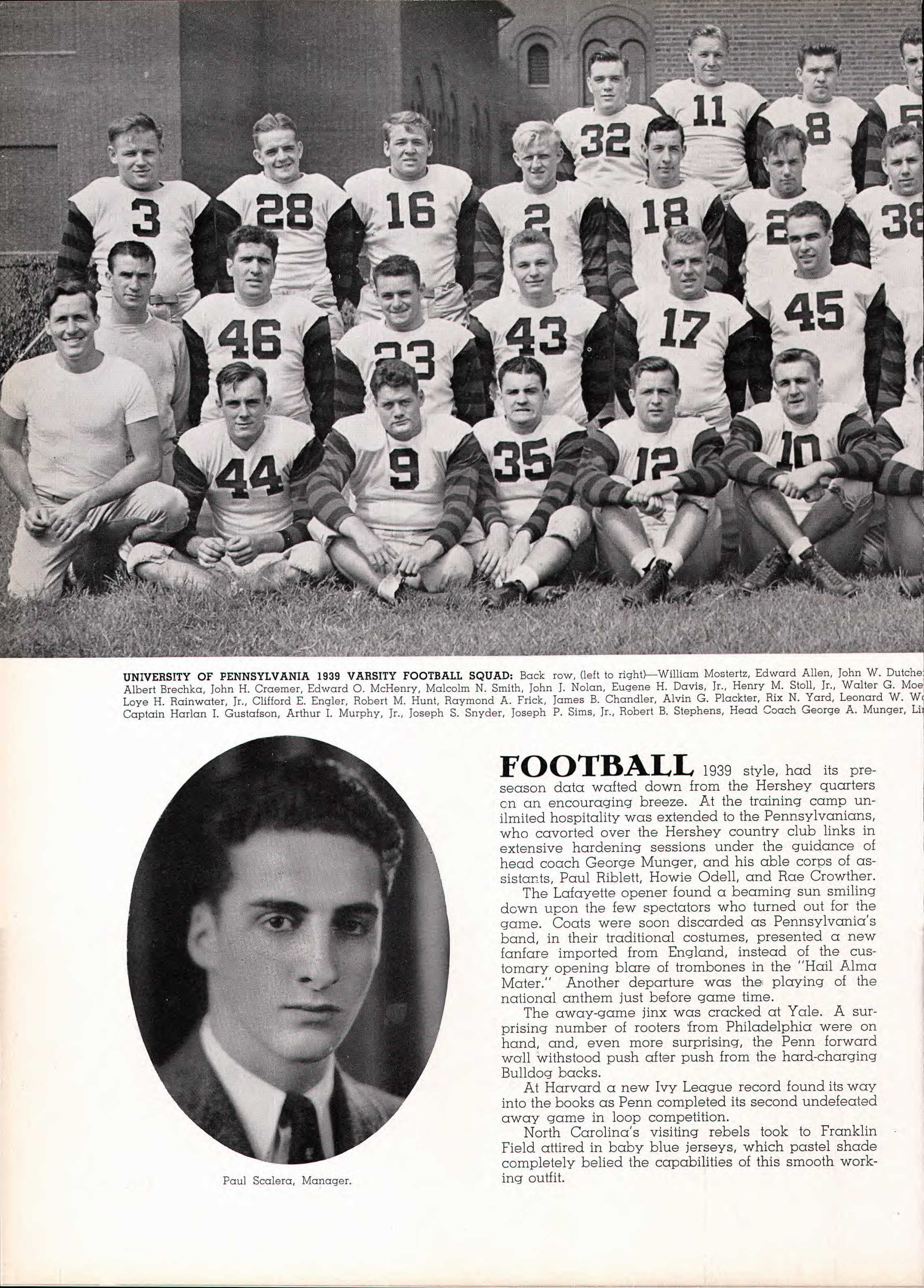 The 1939 Penn Quakers, from the University of Pennsylvania Yearbook, The 1940 Record, Irving Mendelson is on the left page, #23 but the “2” is obscured.24
