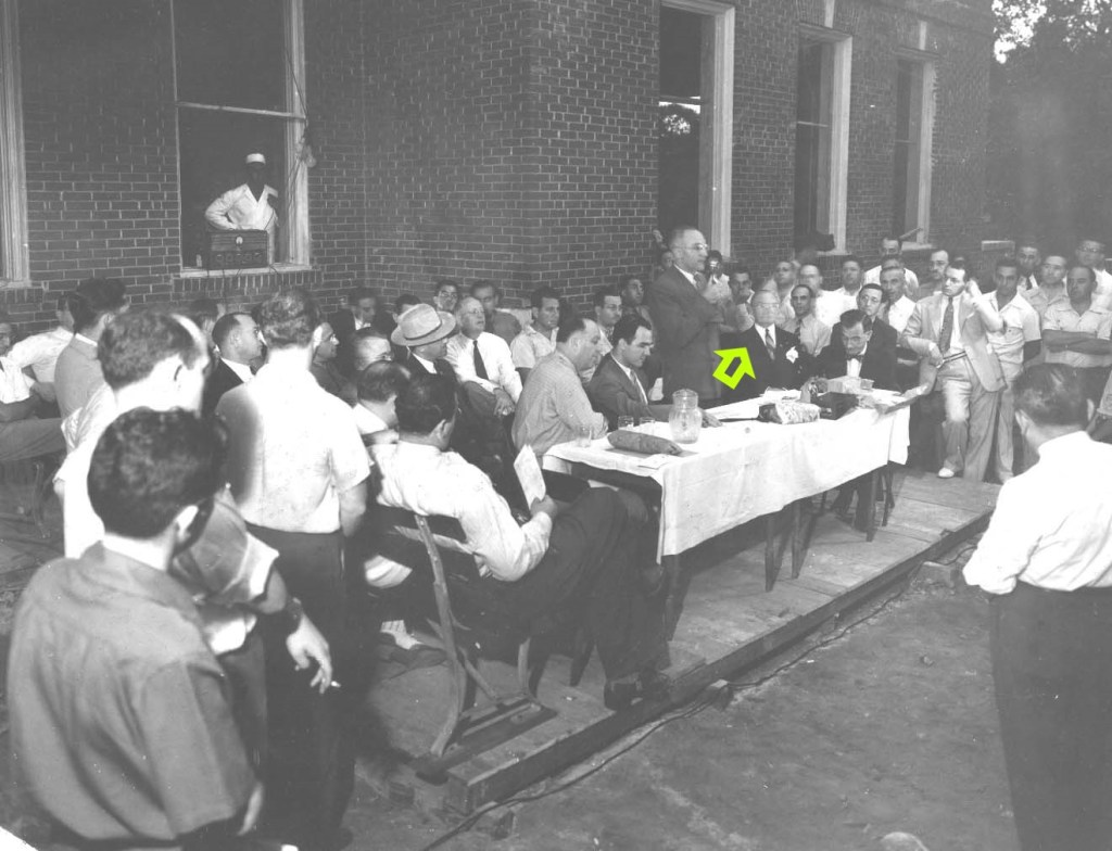 - Jewish Progressive Club on Techwood Drive. The cornerstone laying ceremony. In photograph (a) Max Cuba is standing and speaking, Joseph Cuba is sitting to his left, I.M. Weinstein is on the far left seated at the table (light shirt) and Joseph Lazear is on the right of Max Cuba (seated) with handkerchief in his pocket. In photograph (b) Joseph Cuba is fifth from the left (striped tie), Joseph Lazear (center) and I.M. Weinstein is on the far right (white shirt), 8 July 1940, black and white photograph, 7.5 x 9.25 in, The Joseph Cuba Family Papers Collection, The Breman (https://thebreman.org/collection/catalog/detail/b5a70ecf-5959-44dd-b0e3 : accessed 2 June 2024). ↩︎