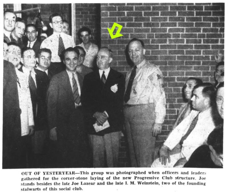 I have been trying to think of some committee of our worthy organization of which Anti-recall Joe was not a better half of, so I could give credit to some of the other boys for the splendid progress we have made, but to no avail. Not that Joe does not deserve untold credit, but I know that this issue has his honor in the limelight throughout its columns, that I could not refrain from mentioning him without excusing myself for negligence, but getting down to seriousness, Joe Lazear worked for the club even if he does let you know about it and every time he gets up on the floor and tells you how hard he works, how he neglected his home for the J.P.C., and almost goes into hysterics, threatening to quit if his work is not appreciated more by a few narrow-minded demagogues. But does he quit? No! Such spirit did not build the Progressive Club. But Little Joe shows that his heart is in the right place and accepts another chairmanship on some new committee and harmony reigns supreme.36