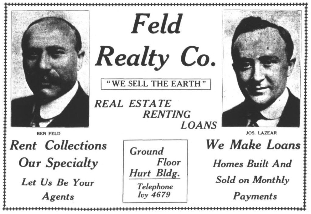 In 1916, Joseph’s new address was 561 Central Avenue, Atlanta, Georgia, which is now part of the same parking lot of his previous address, and he worked for Feld Realty Co., which he ran with Benjamin Feld in suite 124 in the Hurt Building.30