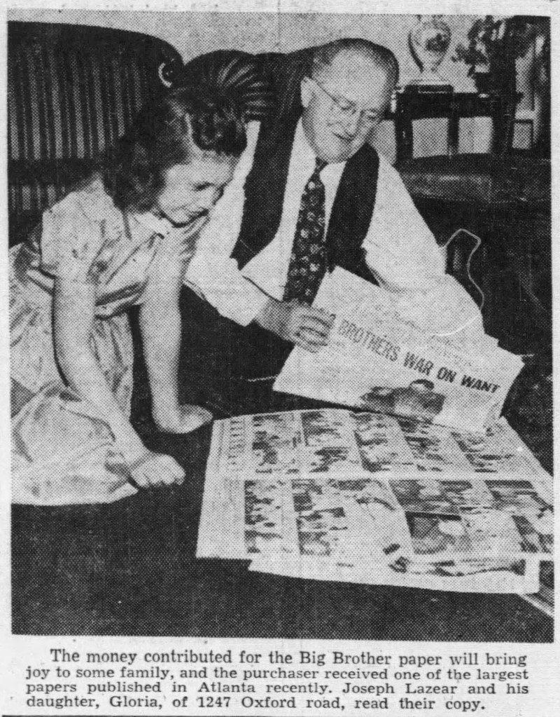 - “Volunteers Turn Newsboys To Make Sale of Big Brothers’ Edition a Success,” The Atlanta Constitution, 18 December 1939, p. 20, cols. 1-8, image, Newspapers.com (https://www.newspapers.com/article/the-atlanta-constitution/21078278/ : accessed 19 June 2018), clip page by user genistory. ↩︎