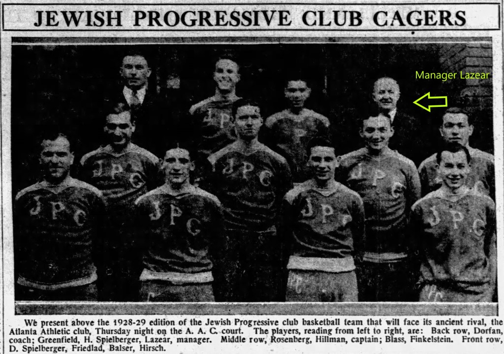 - “Jewish Progressive Club Cagers,” The Atlanta Constitution, 6 January 1929, p. 5B, cols. 4-7, image, Newspapers.com (https://www.newspapers.com/article/the-atlanta-constitution/76018591/ : accessed 18 April 2021), clip page by user genistory. ↩︎