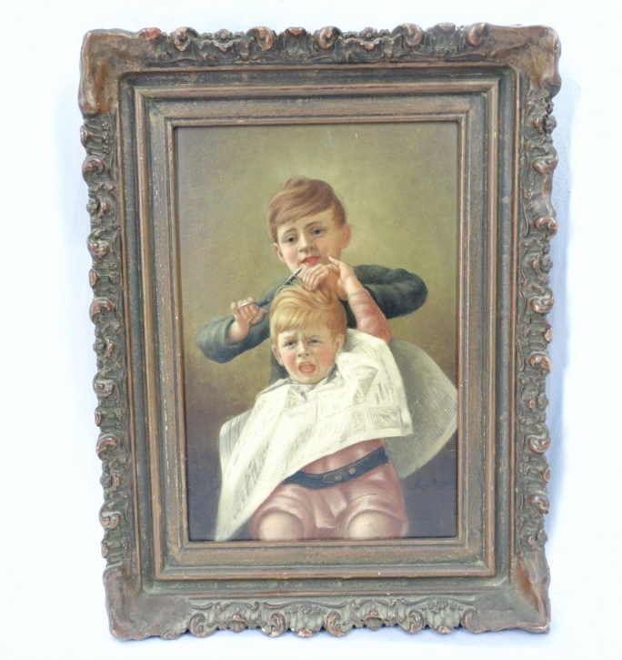 - Hugo A. Posner, “Lot 71: Hugo Possner (Prussian, 1859-1933) “A Difficult Haircut” Signed Original Oil on Board Painting in Original Wooden Frame,” invaluable (https://www.invaluable.com/auction-lot/hugo-possner-prussian-1859-1933-a-difficult-h-71-c-1b84286a6e : accessed 22 January 2022). ↩︎