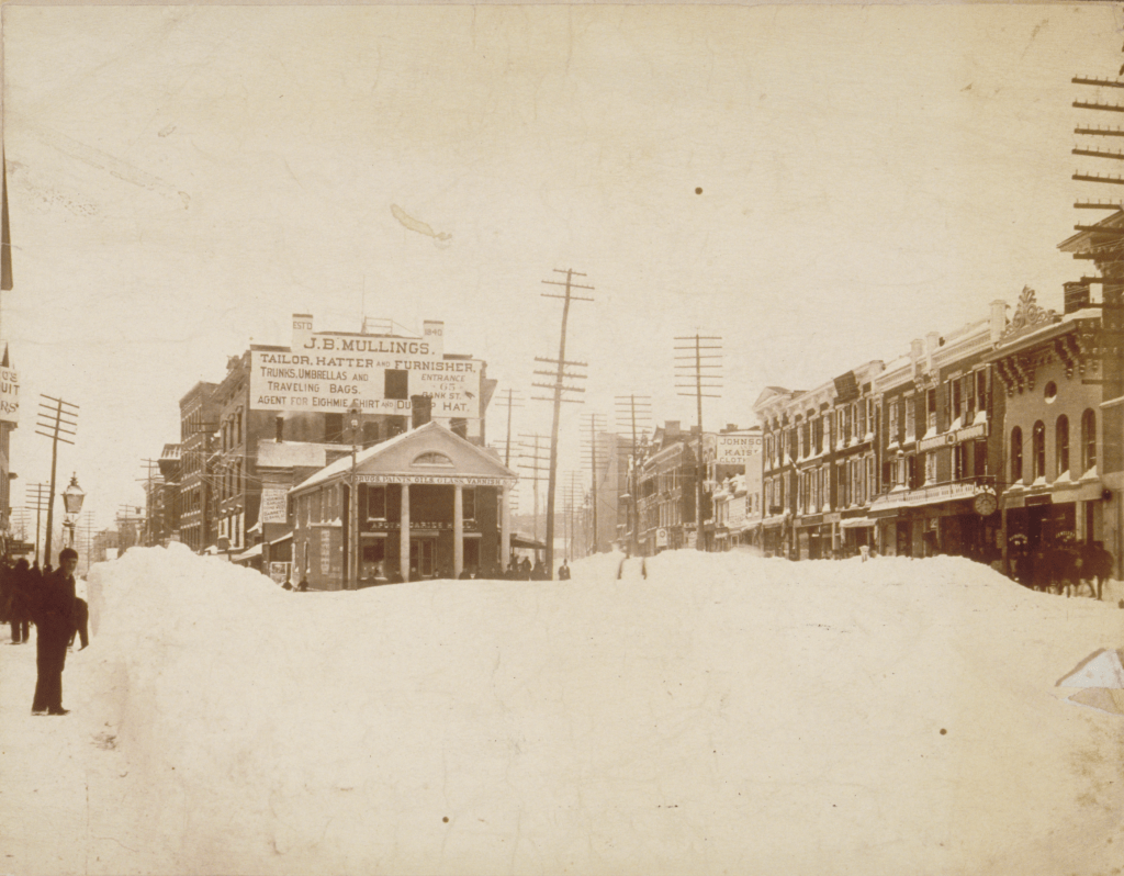 - Alfred A. & Leo F. Adt, After the great blizzard, Bank Street, Waterbury, 12-13 March 1888, still image, The Graphics Collection, Connecticut Historical Society, museum & library (http://hdl.handle.net/11134/40002:13589 : accessed 22 January 2024). ↩︎