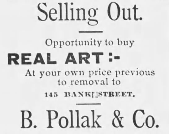 In 1884, B. Pollak & Co. moved to 81 Bank Street, Waterbury, Connecticut, and remained there for two years.
