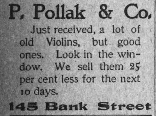 After nearly three months, the Pollak Brothers reopened at the same location and expanded their offerings of musical instruments.48