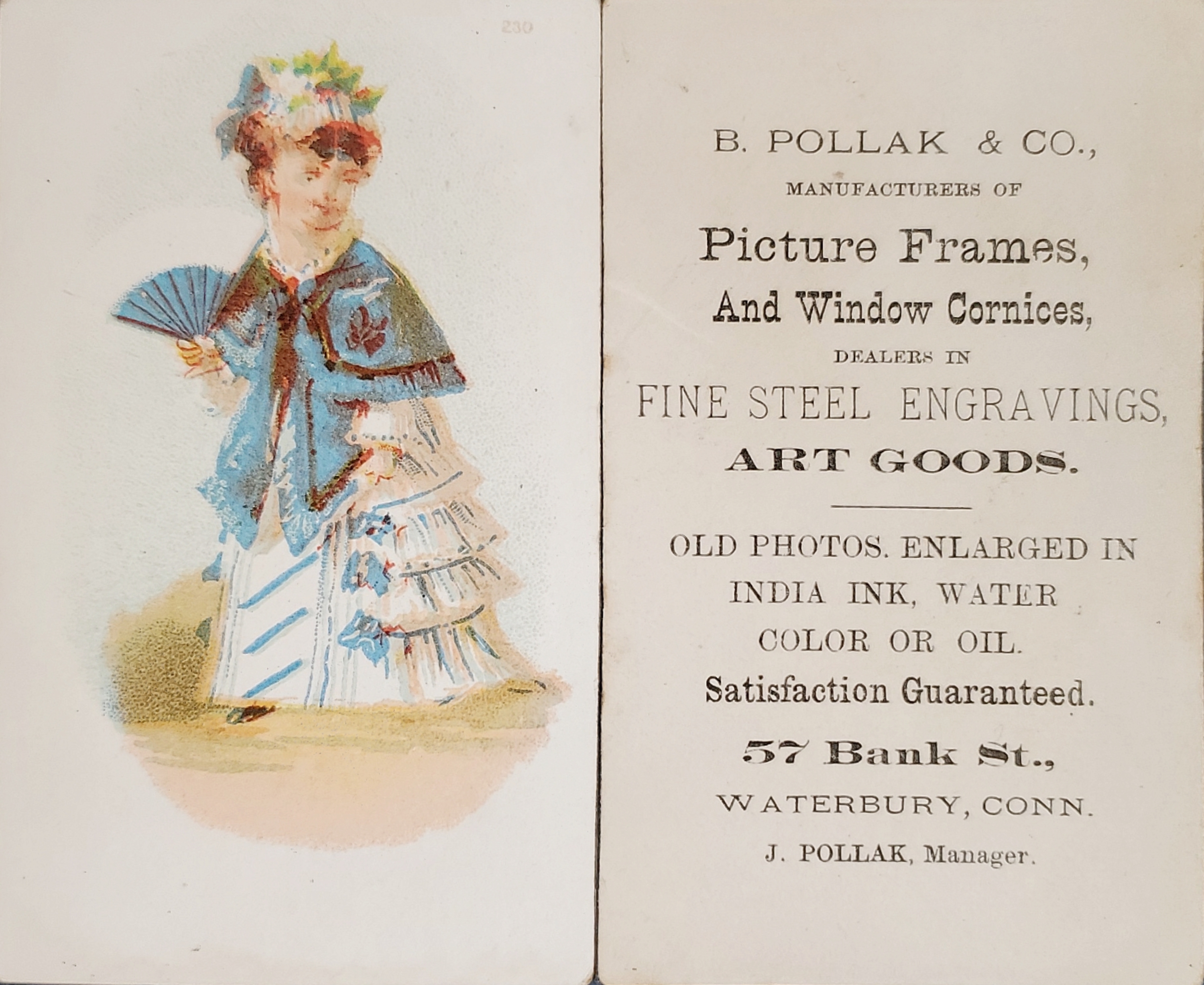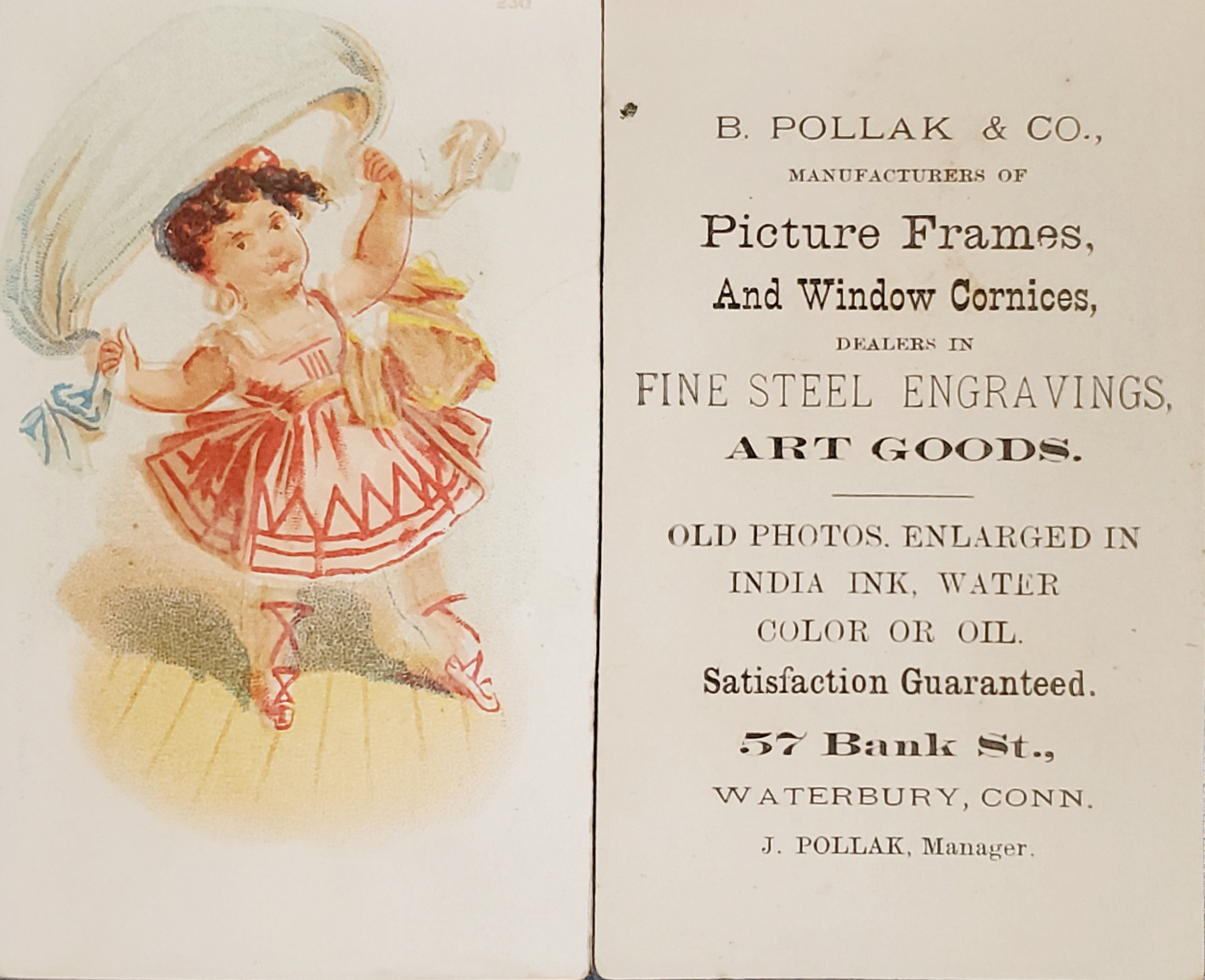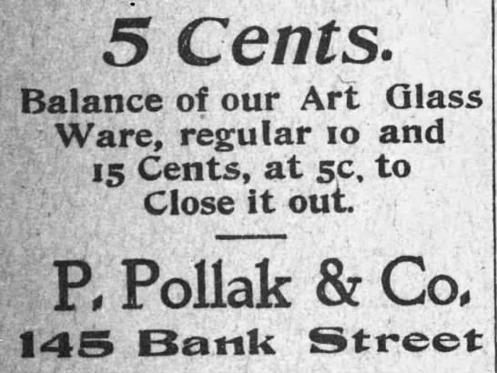In 1889 and 1890, Pollak Brothers was located at 90 Bank Street, Waterbury, Connecticut.27