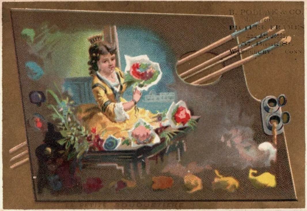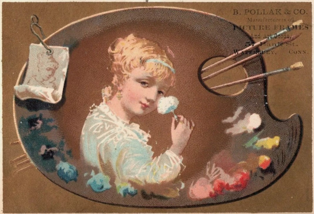 In 1878, Philip lived at 245 South Main Street in Waterbury, Connecticut. He was listed as a canvasser, a term likely referring to his involvement with canvassed art rather than survey-taking.10 With the installation of the highway, the land has been redeveloped, making it difficult to determine the exact location of the home on today’s landscape.